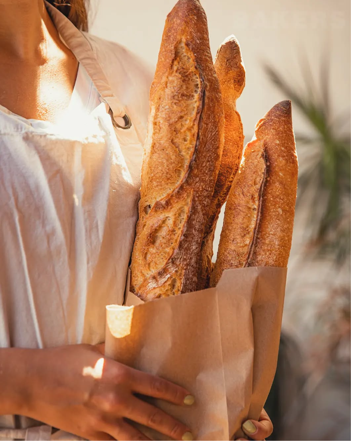 Clásica y rústica, nuestra baguette está elaborada con masa madre natural y harina de trigo, lo que le da una corteza crujiente, un interior suave y una profundidad de sabor única. Fermentada lentamente para desarrollar su carácter y textura, es ideal para acompañar una buena tabla de quesos, preparar un sándwich o simplemente disfrutar con un poco de mantequilla.