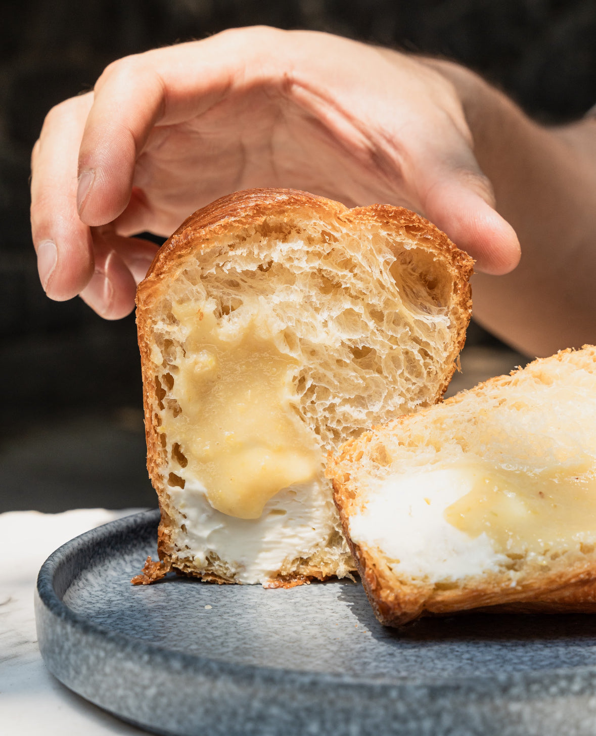 Cruffin de pure de guayaba & queso, un pan laminado irresistible de probar.