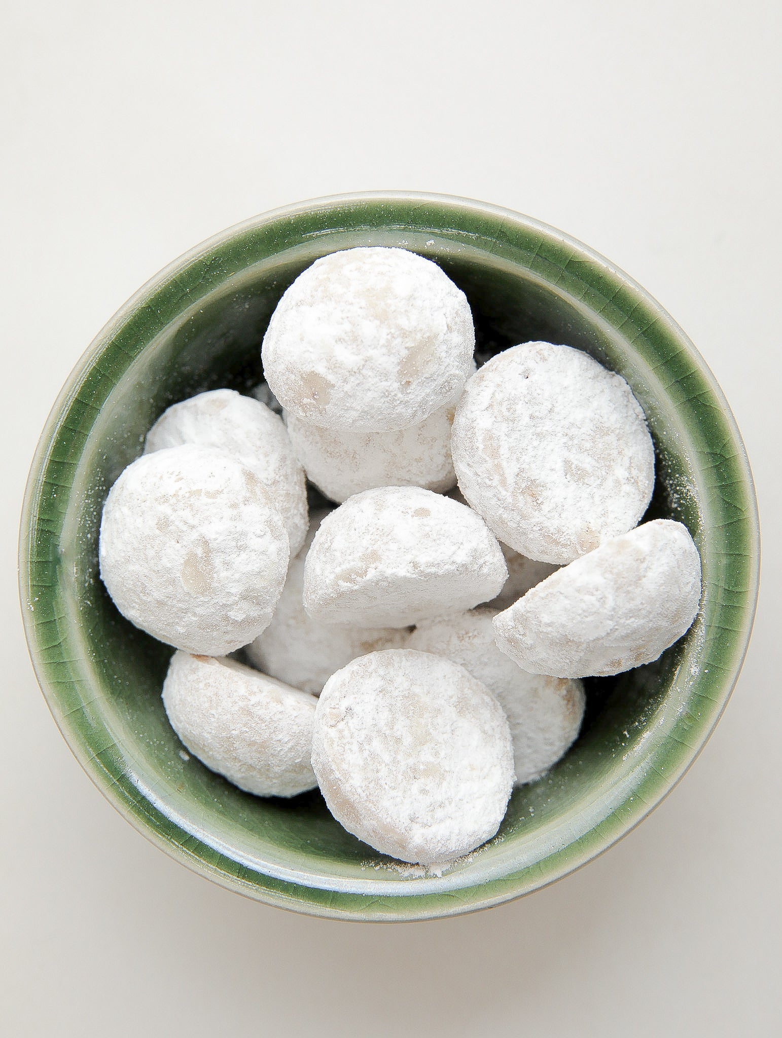 Deliciosas galletas de bolitas de nuez, suaves y mantequillosas, escarchadas con una fina capa de azúcar glass. Un clásico irresistible para disfrutar en cualquier momento o para regalar esta temporada.